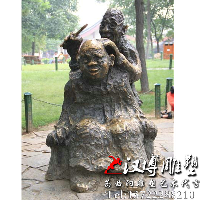 名称:陕西民俗剃头情景雕塑,城市旅游景区铜雕,铸铜人物雕塑订制厂家