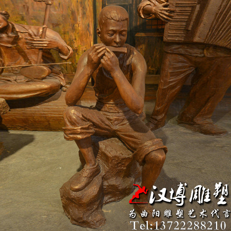 名称:铸铜知青人物吹口琴雕塑,铸铜人物雕塑订制厂家