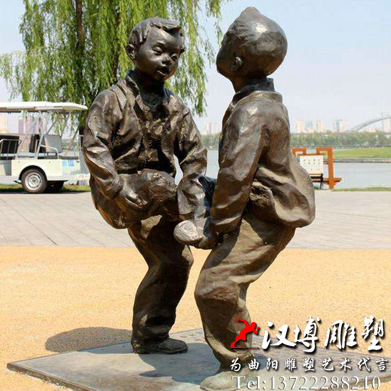 名称:人物雕塑订制厂家,铸铜小孩人物雕像,撞拐童趣雕塑