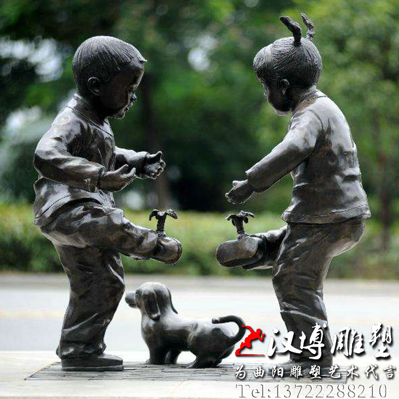 - 铸铜小孩踢毽子玩耍雕塑,城