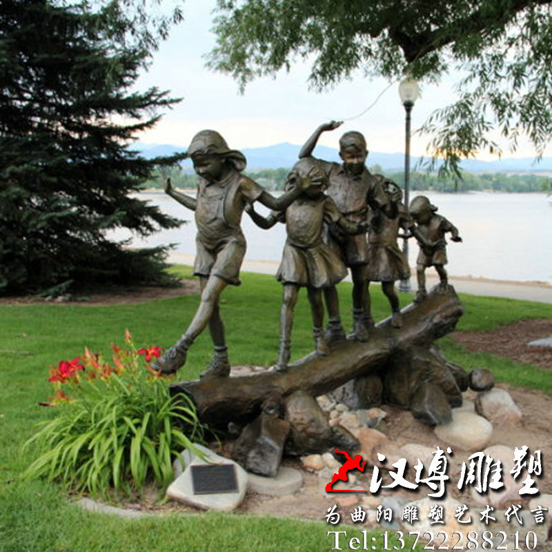 名称:小孩走独木桥雕塑,城市学校景观雕像,铸铜童趣主题雕塑