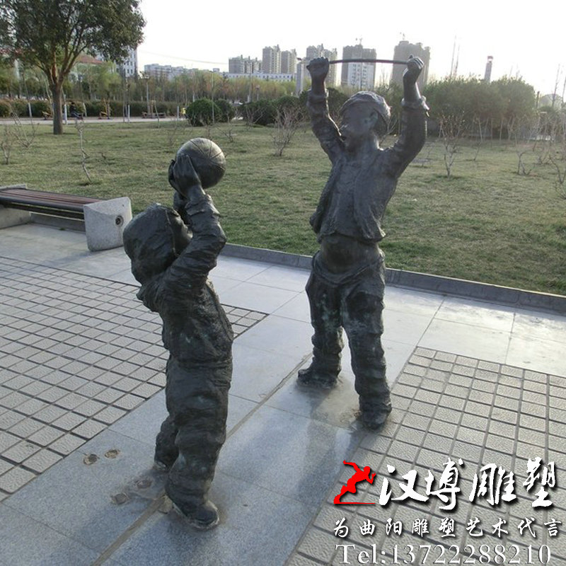 名称:小孩玩篮球铜雕,铸铜人物雕塑订制厂家,城市广场景观雕塑
