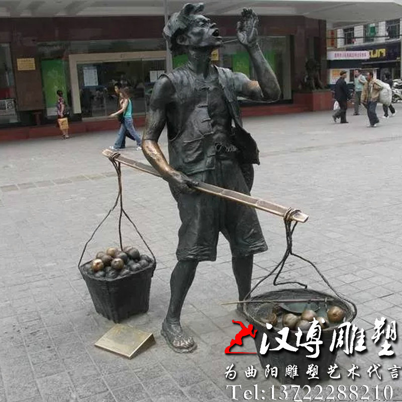 名称:铸铜人物吆喝叫卖铜雕,商业街步行街景观雕塑,人物雕塑订制厂家