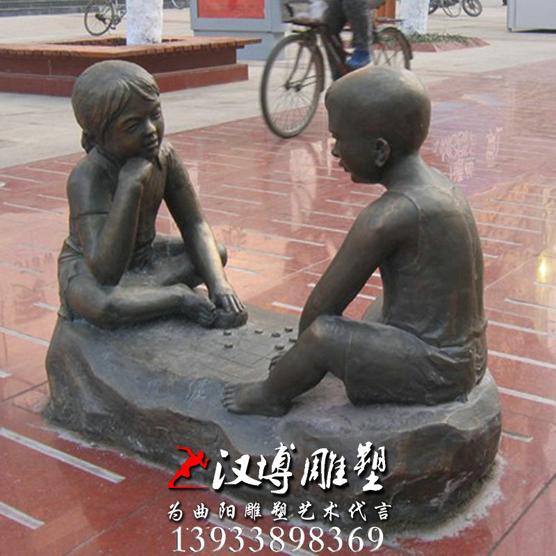 - 小孩下棋人物雕像,玻璃钢