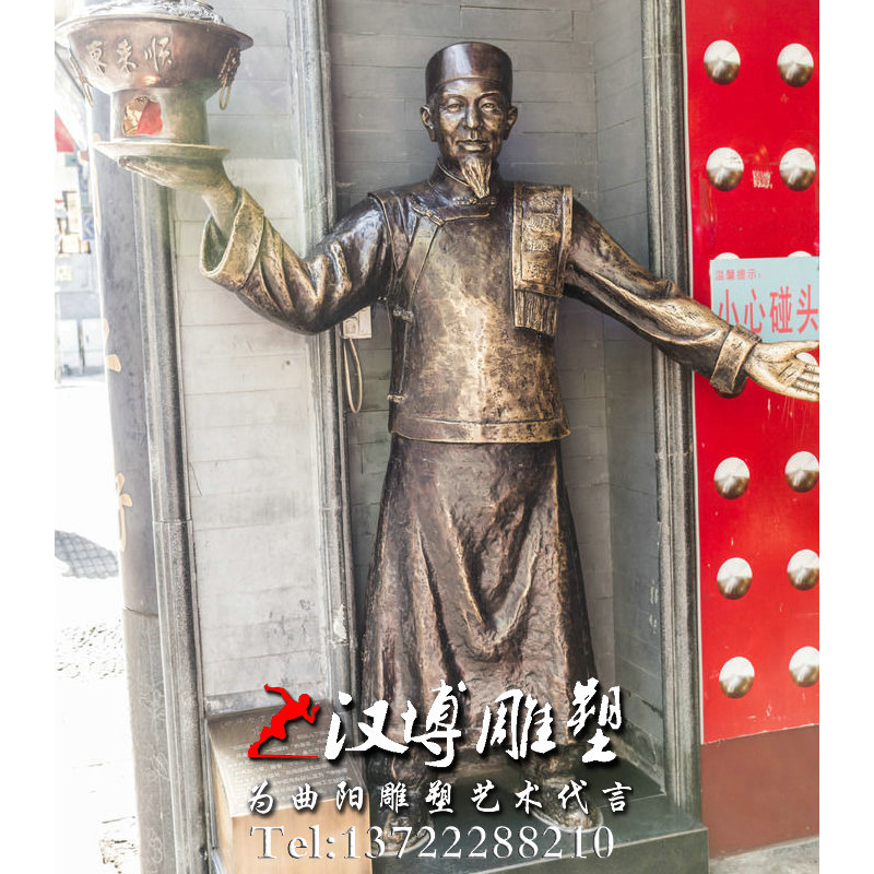 手托火锅人雕塑 ,玻璃钢铜雕,人物雕像