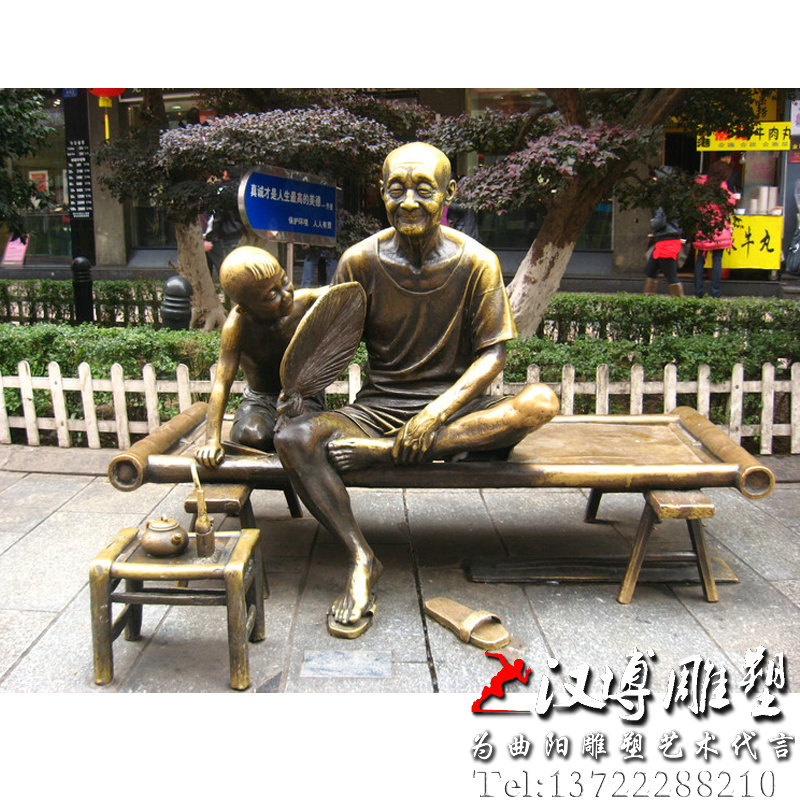 名称:铸铜人物雕塑订制厂家,爷孙俩乘凉雕塑,城市公园林景观铜雕