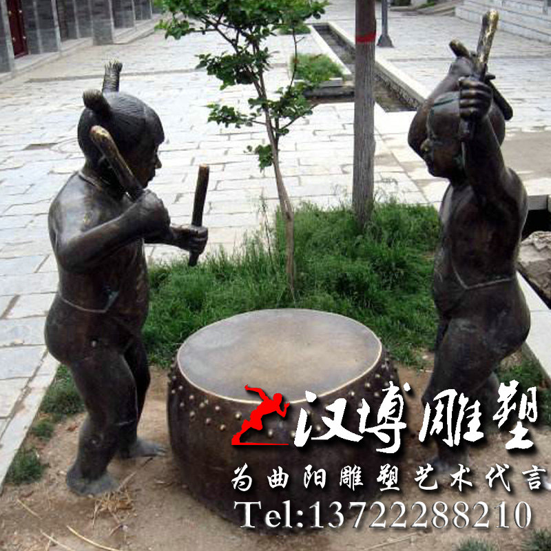 名称:民俗小品雕塑 小孩敲鼓雕塑 铸铜雕塑加工厂 公园雕塑
