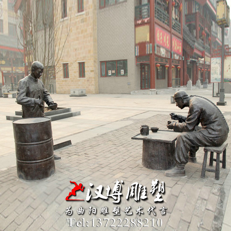 名称:缸炉烧饼人物雕像,玻璃钢铜雕,园林雕塑