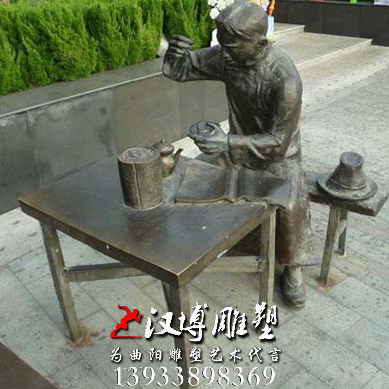 名称:玻璃钢铜雕,吃饭看书人物雕像,民俗文化雕塑