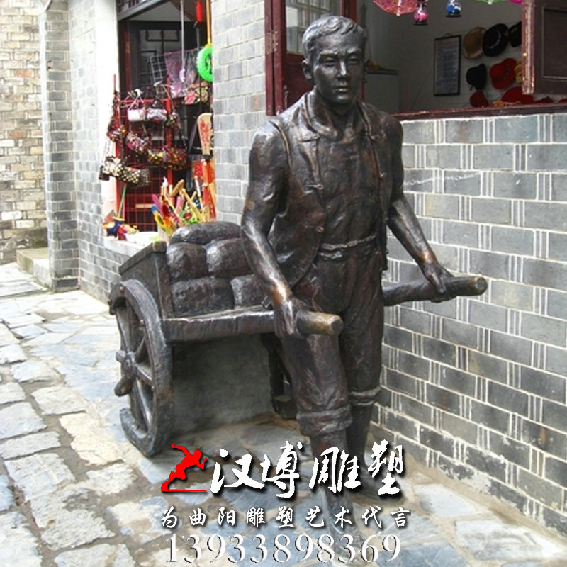 名称:拉车劳动人物雕像,民俗小品雕塑,玻璃钢铜雕