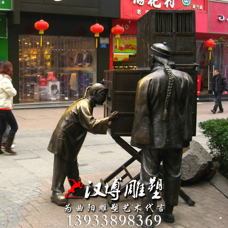 名称:看西洋镜人物雕像,玻璃钢铜雕,民俗文化雕塑