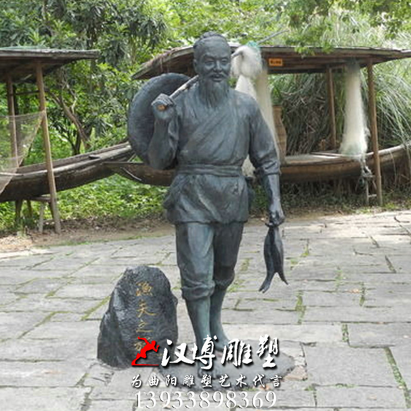 - 卖鱼的渔夫雕像,玻璃钢铜