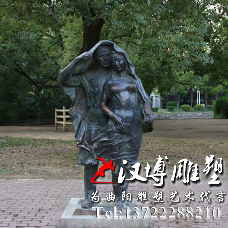 爱情主题 遮风挡雨人物雕塑 铸铜雕塑加工厂 户外小品雕塑