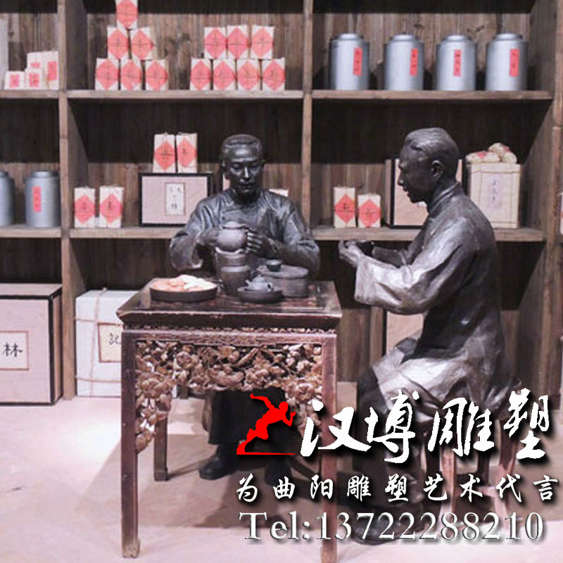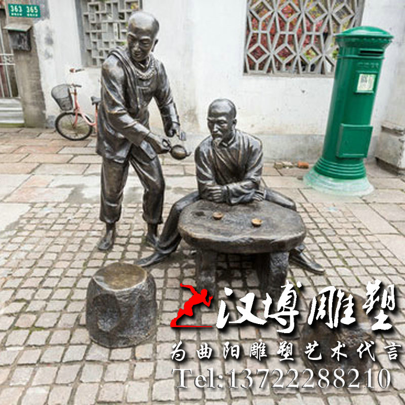 古代人物茶楼喝茶雕塑 铸铜雕塑加工厂 公园景观 民俗小品雕塑 茶