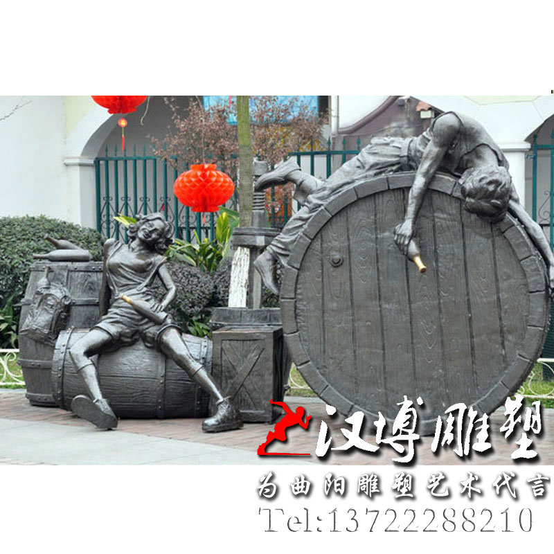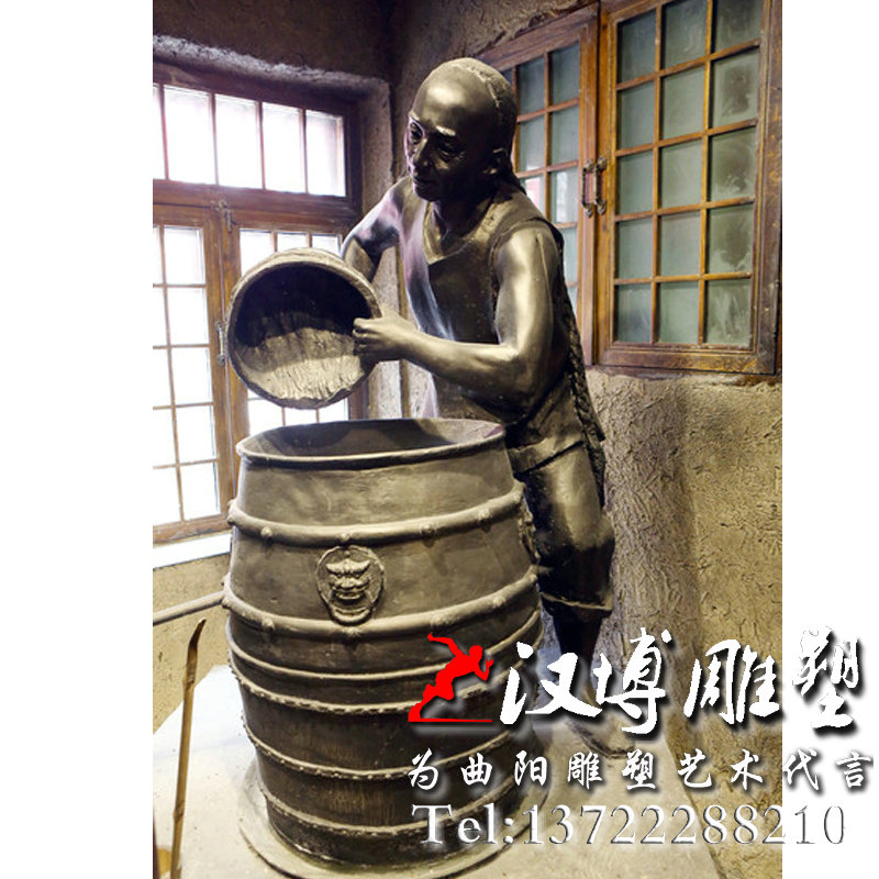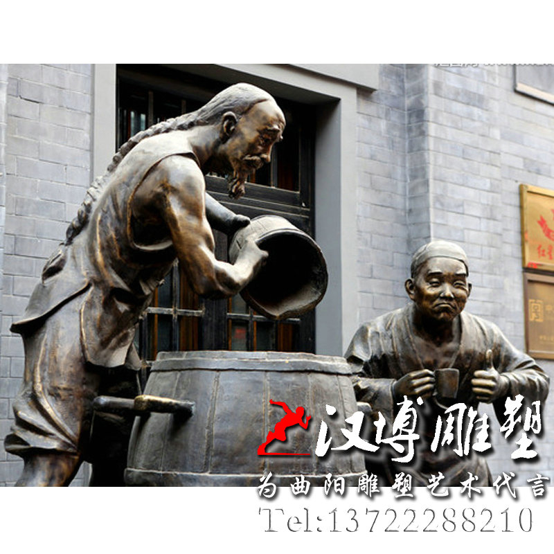 街道小品人物雕塑 卖酒伙计雕塑 酒文化雕塑 铸铜雕塑加工厂 公园
