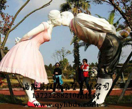 玻璃钢彩绘雕塑-爱情情侣接吻雕塑厂家-人物雕塑