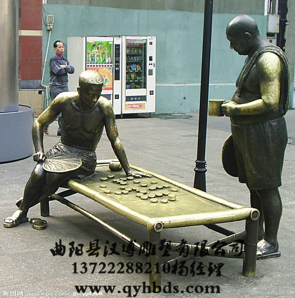 玻璃钢仿铜雕塑-城市广场下棋雕塑-人物雕塑厂家