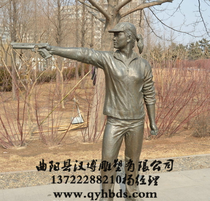 手气枪人物雕塑-运动主题雕塑-玻璃钢仿铜雕塑厂家