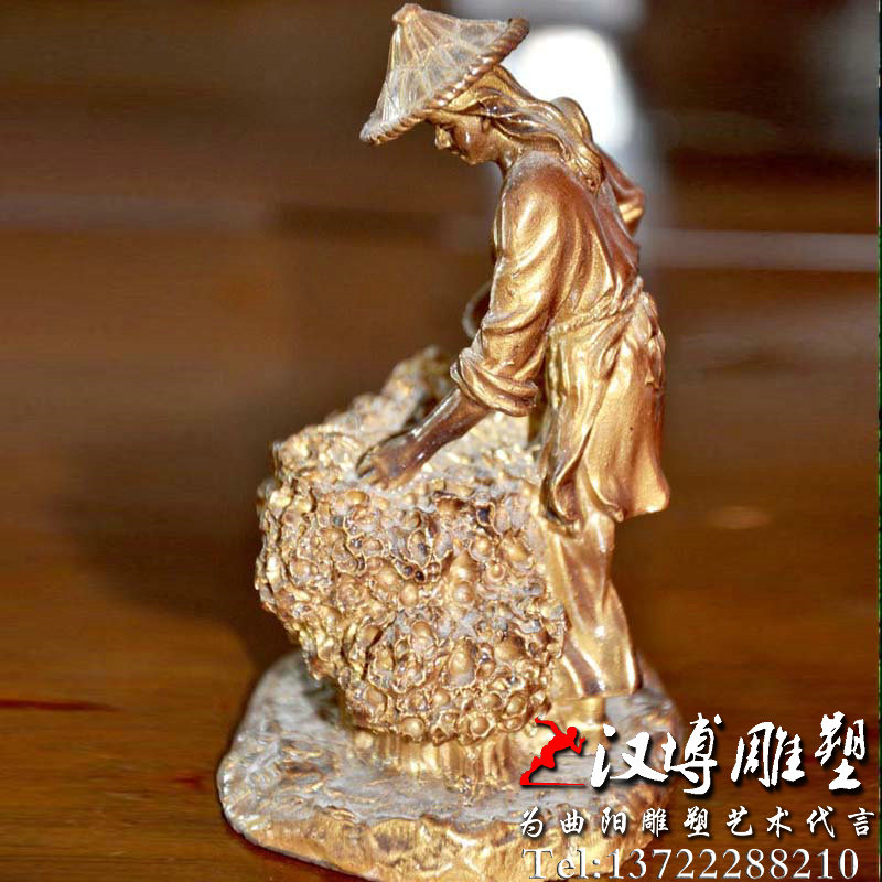 名称:茶文化主题雕塑定制,铸铜人物雕像,茶农采茶情景铜雕