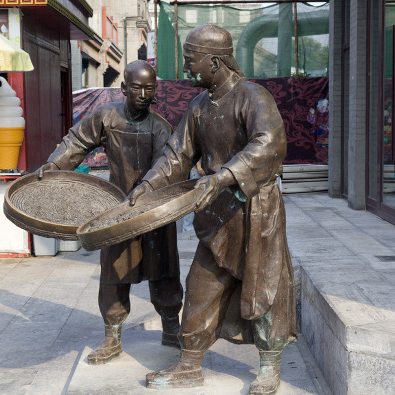 铸铜人物雕像,老北京商业街铜雕,铸铜雕塑加工