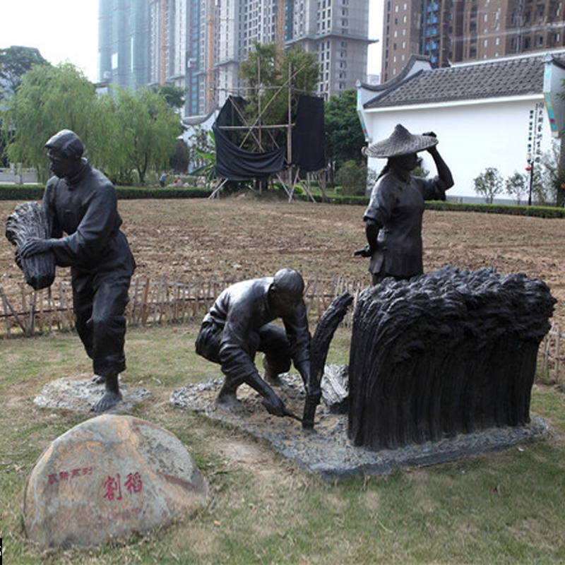 铸铜雕塑,黄铜人物雕像,割稻铜雕