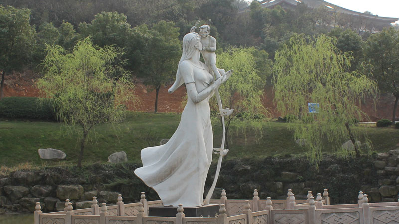 采莲女主题文化雕塑,古代女子收莲蓬的劳作场景。