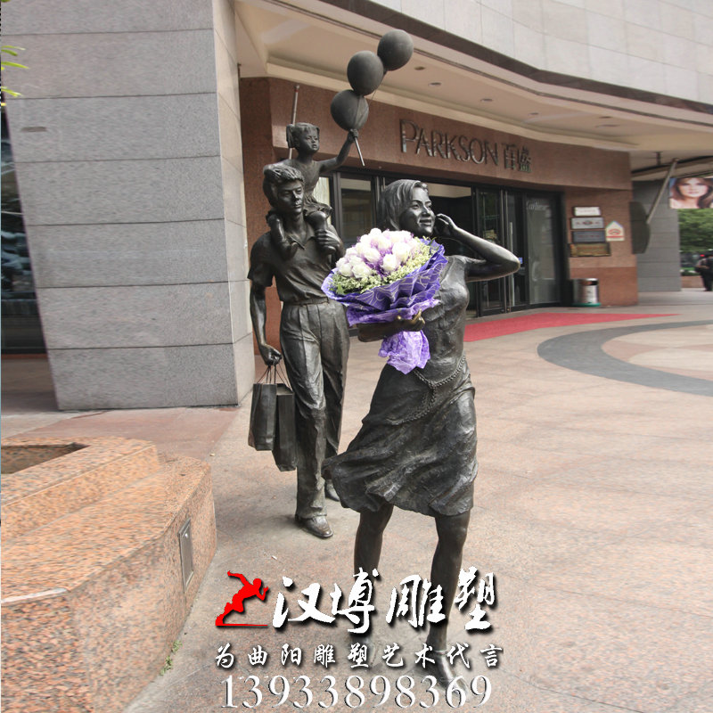 名称:一家三口雕像,玻璃钢铜雕,园林景观雕塑