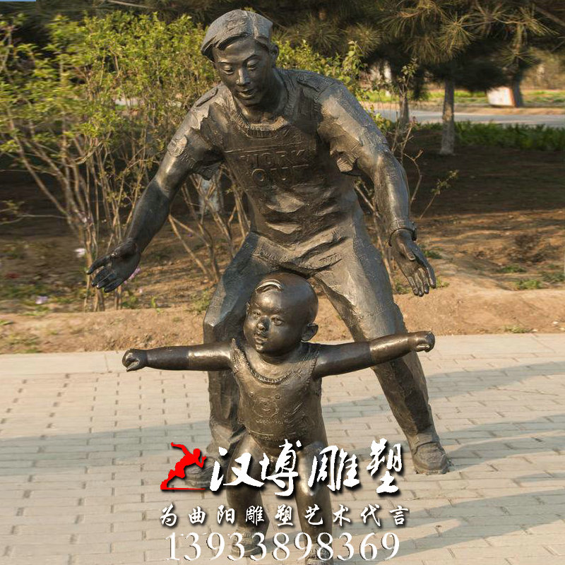 名称:小孩学走路雕像,父爱主题雕塑,玻璃钢铜雕