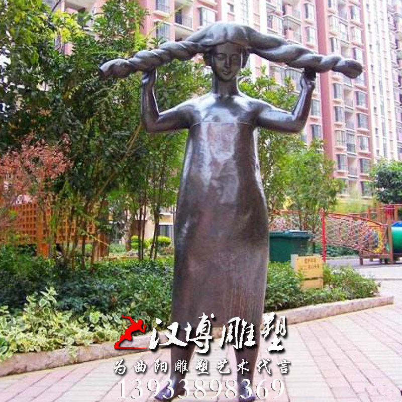 名称:扎辫子小女孩雕像,玻璃钢铜雕,小区雕塑