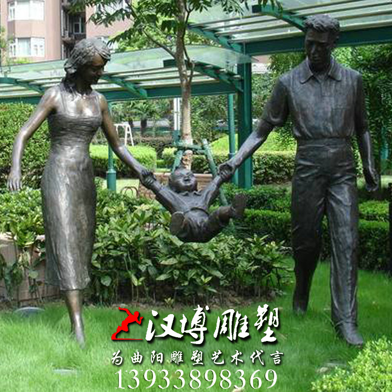 名称:玻璃钢铜雕,一家三口人物雕像,亲情主题雕塑