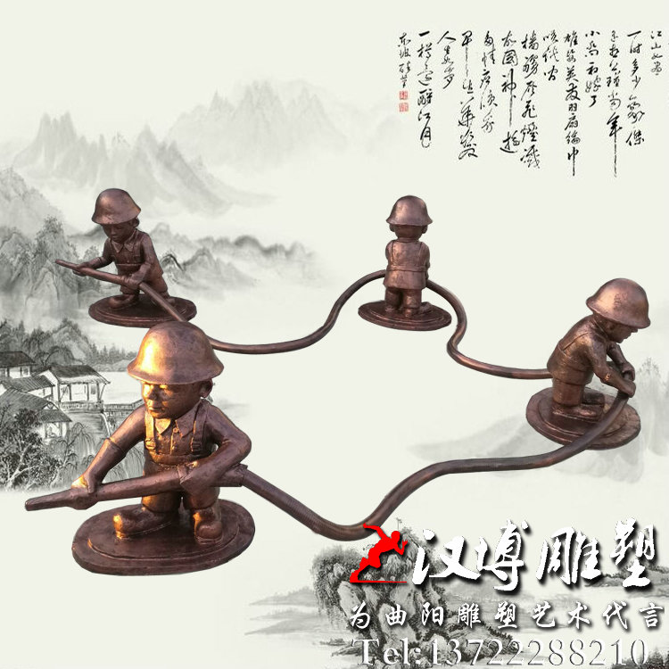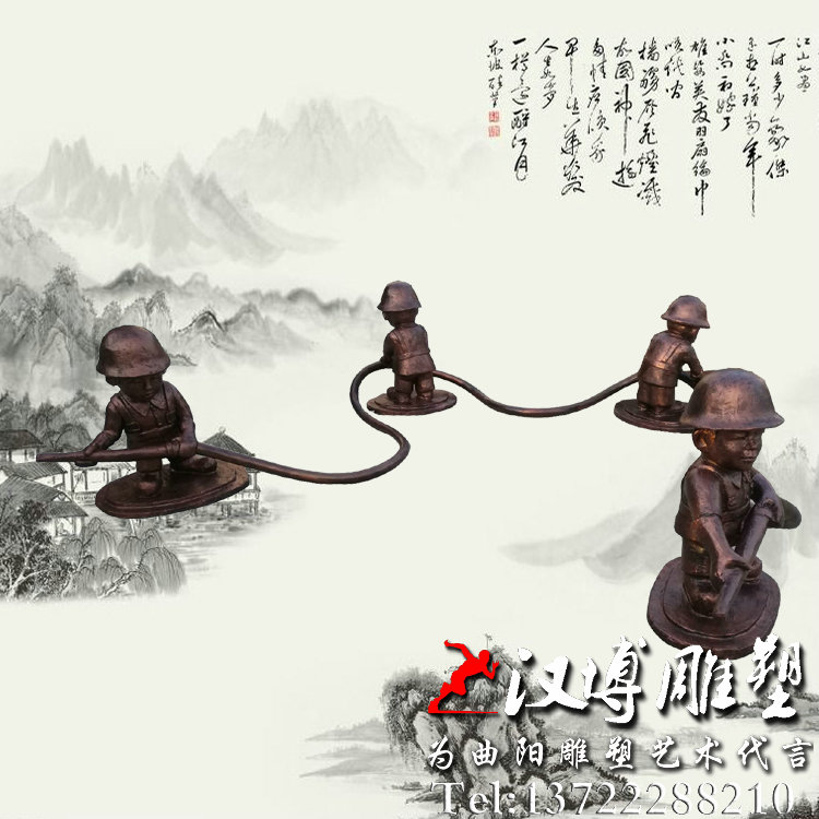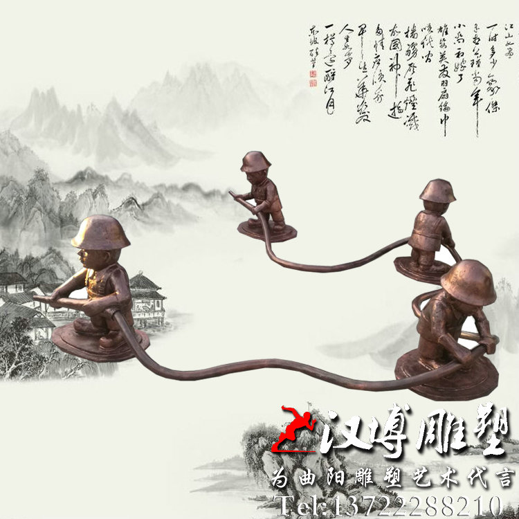 消防主题雕塑定制厂家,城市公园广场景观雕塑,铸铜小消防员铜雕