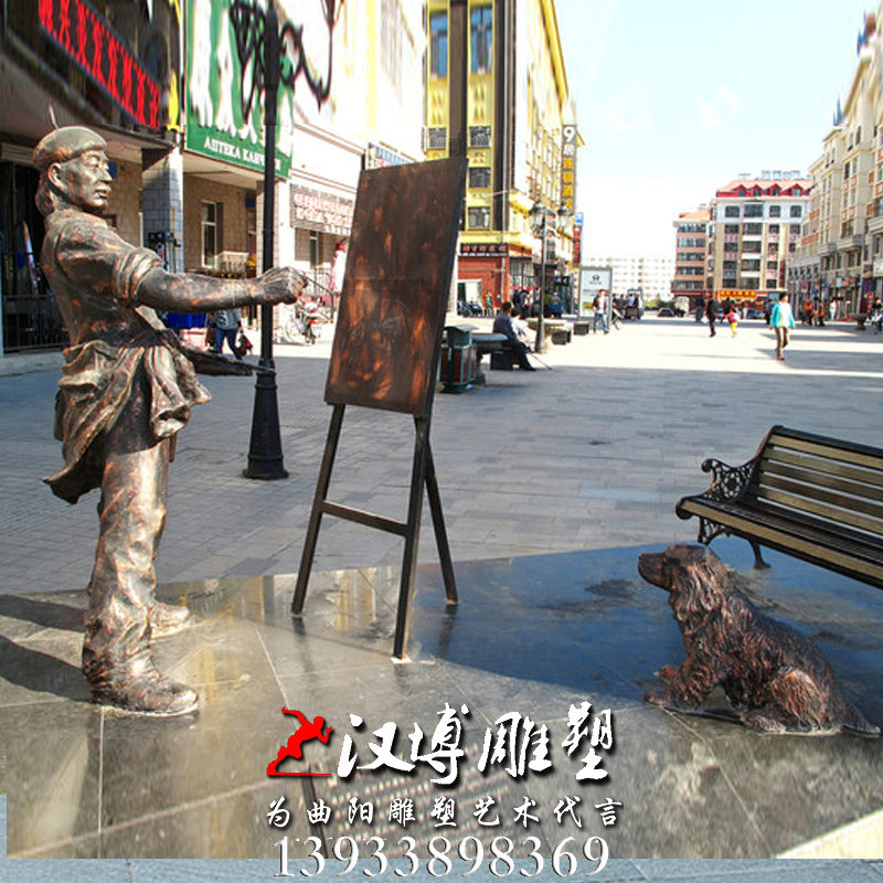 名称:玻璃钢铜雕,绘画人物雕像,广场雕塑