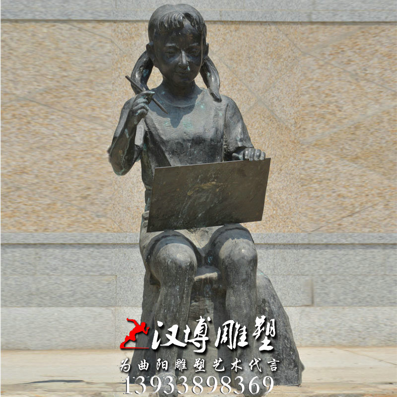 名称:雕像作画女孩,户外园林雕塑,玻璃钢铜雕