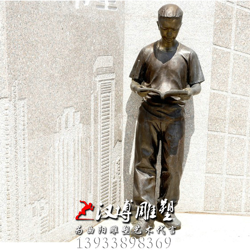 名称:玻璃钢铜雕,读书人物雕像,校园文化雕塑