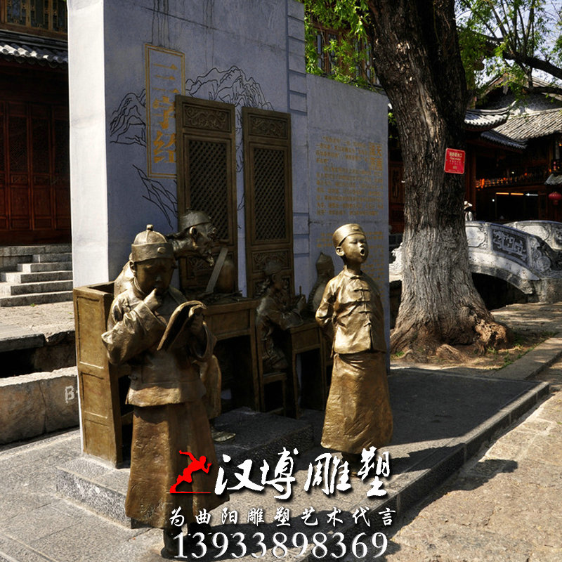 名称:古代私塾雕塑,玻璃钢人物雕像,户外园林铜雕