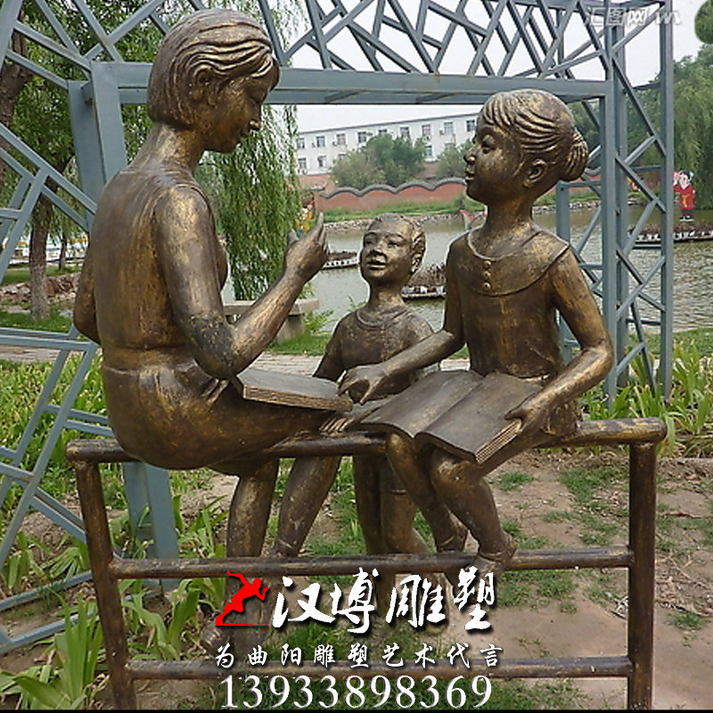 名称:老师学生人物雕像,玻璃钢铜雕,园林景观雕塑