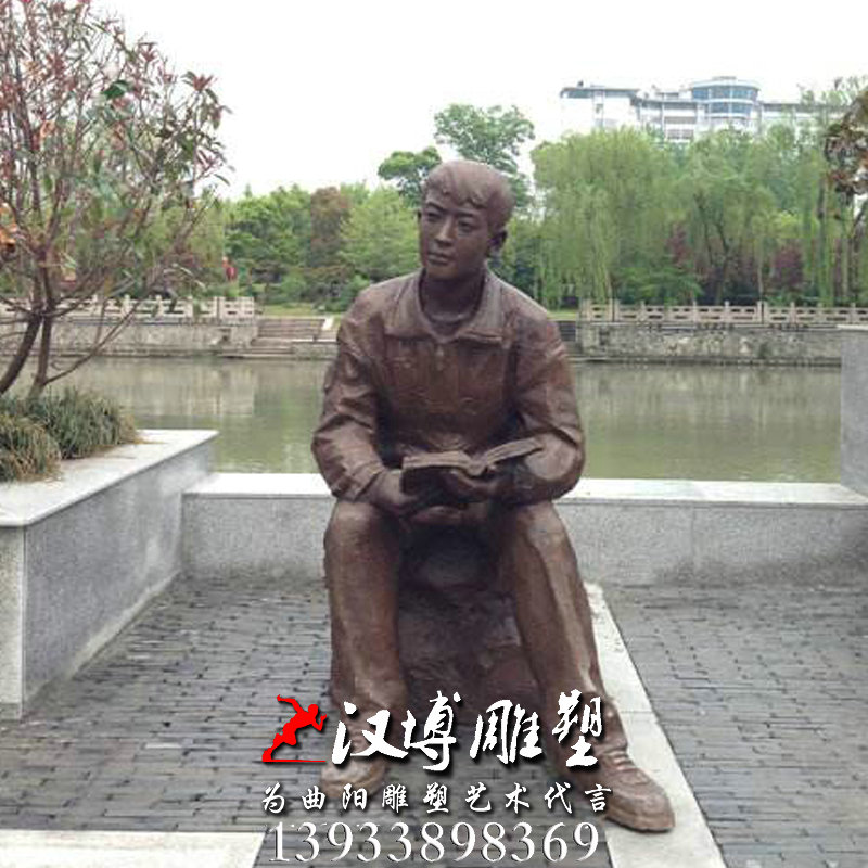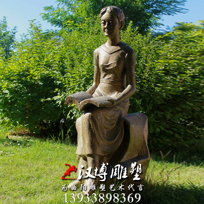 名称:玻璃钢铜雕,读书人物雕像,园林景观雕塑